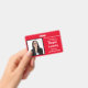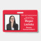 Insigne de participant du séminaire horizontal en rouge et blanc. Tous les éléments peuvent être modifiés, y compris : photo, nom du séminaire, lieu et date du séminaire, nom du participant, titre du participant et nom de l'entreprise. Orientation horizontale. Assieds-toi sur le dessus pour un lanière. Également disponible en orientation verticale dans ce magasin.