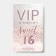 laissez-passer VIP. parties scintillant en or rose script sombre Sweet 16 VIP design.