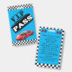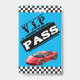Voiture de course bleue Cool tendance Anniversaire VIP Passes Badge Invitation de votre fête invités à votre événement avec ce cool carte VIP voiture de course tendance. Ces badges font d'excellentes invitations personnalisables pour n'importe quel anniversaire thématique. Cette conception montre des bandes de course amusantes et une voiture de sport brillante, parfait pour tout fan de voiture de course. Customisez le dos de la carte avec vos propres détails de fête.