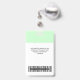 Personnalisez facilement ce badge personnalisé noir et blanc avec photo, code de la barre d'analyse et logo de l'entreprise. Un design d'entreprise simple dans des couleurs standard vert et blanc pastel frais entièrement personnalisable en tailles avant et arrière, sans-serif polices basiques et modernes et un look professionnel et clair. Disponible avec cordon, clip métallique ou avec rétractable. Pas de commande minimum.