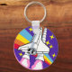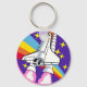 badge patch pink rainbow rocket keychain