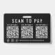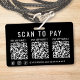 Soyez payé partout où vous faites des affaires avec ce badge élégant et professionnel Scan to Pay 3 Codes QR de paiement noir. Ce badge léger permet aux clients d'envoyer un paiement instantanément avec un simple scan -- parfait pour les services mobiles, les événements chargés et le paiement en déplacement. La mise en page minimaliste comporte un appel à l'action clair pour scanner et payer, 3 codes QR, vos identifiants de réseaux sociaux Facebook, Instagram et TikTok, ainsi que des lettres blanches modernes de chaque côté. Téléchargez vos codes QR et ajoutez les noms de vos applications de paiement, le nom de votre entreprise et votre identifiant de réseau social pour une apparence soignée et marquée. Idéal pour les vendeurs, les artistes, les barmen, les coiffeurs, les maquilleurs, les chauffeurs-livreurs, les vendeurs de marché et le personnel d'événement, ce badge de paiement porté permet une c