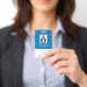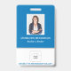 badge de nom de l'employé de l'immobilier moderne avec photo et logo. Conçu avec des couleurs bleues et blanches avec un endroit pour votre photo, logo, nom, titre et nom de l'entreprise. Parfait pour un Realtor, un Agent, un Broker ou tout professionnel dans le marché de l'immobilier. Utilisation pendant les journées portes ouvertes, les événements d'appréciation des clients et les visites à domicile.