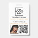 Un badge d'entreprise personnalisé minimaliste moderne avec logo d'entreprise, code QR et photo. Personnalisez avec votre logo, code QR, photo et détails pour créer votre propre badge d'entreprise élégant et unique blanc. Personnalisez encore plus avec un fond de couleur ou une police personnalisée.