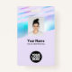 Personnalisez facilement ce badge personnalisé Holographique noir Pastel Nom de l'employé avec photo, Code de la barre de numérisation et logo de l'entreprise. Un design d'entreprise moderne et coloré dans des couleurs pastel pour bébé entièrement personnalisable en tailles avant et arrière, sans-serif polices de base et moderne et un look professionnel et cool. Disponible avec cordon, clip métallique ou avec rétractable. Pas de commande minimum.