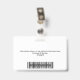 Personnalisez facilement ce badge personnalisé de nom d'employé avec photo, code de barre d'analyse et logo d'entreprise. Un design d'entreprise simple et horizontal dans des couleurs minimes noir et blanc entièrement personnalisable en tailles avant et arrière, fontes sans-serif condensées basiques et modernes et un look professionnel et clair. Disponible avec cordon, clip métallique ou avec rétractable. Pas de commande minimum.