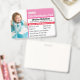 Cette carte d'identification pour enfant est parfaite pour votre enfant. Elle contient une couleur rose, ainsi que du texte noir sur le devant pour l'adresse, des informations telles que la taille, le poids, le groupe sanguin et la date de naissance. Il y a également un espace pour ajouter des numéros de contact et des noms en cas d'urgence. Remplacez l'image modèle par celle de votre enfant !