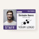 badge d'identification de l'employé avec un design propre en violet, noir et blanc. badge d'identification de l'employé personnalisé avec photo, nom, titre, numéro d'identification et logo de votre entreprise.