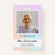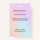 Un arc-en-ciel pastel joli badge photo d'identité d'enseignant de la maternelle pour l'usage en classe, pour que les élèves puissent voir leur formidable professeur de maternelle sourire sans masque. Les modèles de texte personnalisés pour le nom de l'enseignant, l'école, inclut également un modèle photo personnalisé afin que vous puissiez facilement ajouter votre propre photo. L'arrière a de l'espace pour une adresse, un numéro de téléphone et une adresse e-mail. Joli arrière - plan holographique à licorne arc-en-ciel.