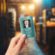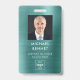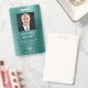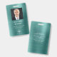 Badge de photo d'identité d'entreprise personnalisé moderne vert métallisé faux. Personnalisez ce badge de carte d'identité d'entreprise avec le nom de vos employés, leur poste, leur photo et le logo de votre entreprise sur le recto et votre texte d'information personnalisé au dos. La photo de l'employé fonctionne mieux au format carré. Votre logo fonctionne mieux sous forme de fichier PNG au format carré avec un fond transparent. Le logo de remplacement que vous voyez sur le badge sera complètement remplacé par votre propre logo.