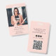 Ce badge d'entreprise comporte un titre et un nom photo, adapté à de nombreux titres professionnels comme consultant, développeur de contenu, éditeur, consultant en ventes, etc. L'envers contient les informations de contact, les médias sociaux et le code QR. Remplacez cet exemple de photo avec votre propre photo. Un arrière - plan rose pêche à l'avant et à l'arrière du badge.