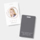 Ajoutez une photo à ce badge chic pour créer des étiquettes de nom personnalisées pour vos employés. Une fausse bordure en or rose encercle votre photo, avec le nom et le titre en dessous. Ajoutez votre adresse professionnelle ou des informations supplémentaires à l'envers en blanc sur gris élégant.