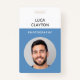 badge photo moderne et professionnel avec votre photo dans un cadre circulaire avec typographie minimaliste tendance. À l'arrière se trouve le rythme pour les coordonnées, le site Web ou les médias sociaux ainsi que votre logo personnalisé ou votre code QR. C'est la version bleue tranquille.