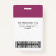 Personnalisez facilement ce badge personnalisé de nom d'employé avec photo, code de barre d'analyse et logo d'entreprise. Un design d'entreprise simple en violet fleur orchidée et couleurs blanches entièrement personnalisable en tailles avant et arrière, sans-serif polices de base et moderne et un look professionnel et clair. Disponible avec cordon, clip métallique ou avec rétractable. Pas de commande minimum.