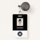 Personnalisez facilement ce badge personnalisé noir et blanc avec photo, code de la barre d'analyse et logo de l'entreprise. Un design d'entreprise simple en couleurs standard monochromes entièrement personnalisable en tailles avant et arrière, sans-serif polices de base et moderne et un look professionnel et clair. Disponible avec cordon, clip métallique ou avec rétractable. Pas de commande minimum.