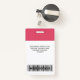 Personnalisez facilement ce flamboise rose fushia vibrant Nom de l'employé Badge avec Photo, Code de la barre de numérisation et logo de l'entreprise. Un design d'entreprise simple en couleurs standard fushia rose et blanc girly, entièrement personnalisable en tailles avant et arrière, sans-serif polices de base et moderne et un look professionnel et clair. Disponible avec cordon, clip métallique ou avec rétractable. Pas de commande minimum.