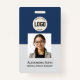 Photo personnalisée de l'employé, Code à barres, Logo, Insigne de nom, ID, Carte d'identité Personnalisez facilement ce Insigne personnalisé de nom de l'employé avec Photo, Code de la barre d'analyse et logo de l'entreprise. Un design d'entreprise simple en bleu marine et blanc entièrement personnalisable en tailles avant et arrière, sans-serif polices de base et moderne et un look professionnel et clair. Disponible avec cordon, clip métallique ou avec rétractable. Pas de commande minimale. entreprise, employé, standard, classique, vente au détail, petite entreprise, badge personnalisé employé, hôpital, clinique