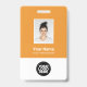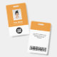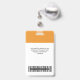 Personnalisez facilement cette tangerine orange Personnalisé Nom de l'employé Badge avec Photo, Scan Bar Code et logo de l'entreprise. Un design d'entreprise simple dans les couleurs standard tangerines orange et blanches à la mode entièrement personnalisable dans les tailles avant et arrière, sans-serif polices de base et moderne et un look professionnel et clair. Disponible avec cordon, clip métallique ou avec rétractable. Pas de commande minimum.