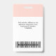 Personnalisez facilement ce badge de nom d'employé pastel rose pâle avec photo, code de barre de numérisation et logo d'entreprise. Un design d'entreprise simple en couleurs standard rose et blanc girly entièrement personnalisable en tailles avant et arrière, fontes sans-serif basiques et modernes et un look professionnel et clair. Disponible avec cordon, clip métallique ou avec rétractable. Pas de commande minimum.