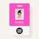 Personnalisez facilement ce badge personnalisé de nom d'employé avec Photo, Scan Qr Code (toujours lisible, ça marche !) et logo d'entreprise. Un design d'entreprise simple dans les couleurs modernes rose et blanc néon entièrement personnalisable en tailles avant et arrière, sans-serif polices de base et moderne et un look professionnel et clair. Disponible avec cordon, clip métallique ou avec rétractable. Pas de commande minimum.
