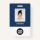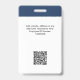 Personnalisez facilement ce badge personnalisé de nom d'employé avec photo, code Qr et logo d'entreprise. Un design d'entreprise simple en bleu marine et blanc entièrement personnalisable en tailles avant et arrière, sans-serif polices de base et moderne et un look professionnel et clair. Disponible avec cordon, clip métallique ou avec rétractable. Pas de commande minimum.