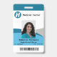 Photo d'employé de l'entreprise facilement personnalisable, badge de nom avec code à barres et logo de l'entreprise. Badge est disponible avec une pince métallique, rétractable ou lanyard. Conçu par 1bizchoice (droits réservés).