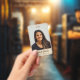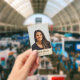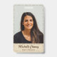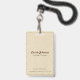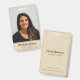 Badge professionnel et moderne employé photo avec un arrière - plan texturé en faux cuir blanc. Cadre cousu brun amovible ; associé à une police amusante et décontractée reflétant votre personnalité et votre industrie. Modèle est prêt pour vous à mettre à jour les informations de votre entreprise et de vos employés. Crédit photo : Stephanie Liverani, Merci !