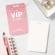Badge Pink Parties scintillant Glam VIP All Access Pass