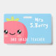 Caractère mignon fraise avec texte personnalisé des deux côtés. Pour quelqu'un qui travaille avec des enfants dans l'éducation ou le divertissement.