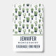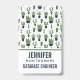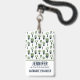Un badge à la saveur occidentale rustique. Conçu avec un tas de cactus verts mignons dans un motif extensible. Plus précisément, des cactus épineux de couleur verte, de toutes sortes de formes et de tailles, chacun assis dans son propre pot de fleurs bleu foncé. Des petits triangles décoratifs entre eux. Personnalisez avec votre nom et votre profession.