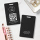 Modern QR code event badge designed for professional networking, conferences, trade shows, corporate events, and business gatherings. This clean, minimalist badge layout features space for your logo, a prominent QR code for instant contact sharing, the attendee name, professional title, and optional company branding. The reverse side includes additional business details such as company name, website, social links, or contact information, creating a compact digital business card that connects people quickly without exchanging paper. Ideal for entrepreneurs, small business owners, speakers, exhibitors, consultants, startups, and corporate teams who want a sleek, tech forward way to share information and drive traffic to their website or portfolio. The modern black background keeps the design polished and professional while ensuring the QR code remains easy to scan during busy networking events.