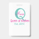 Badge Queen of cuisine monogramme vert rose simple minim