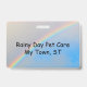 Pawprint in upper left, with rainbow cutting from corner to corner below. Front shows Name and title, back (minus paw print) shows business name and location.