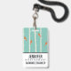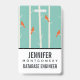 Un badge avec une illustration de bouleaux avec des orangers assis sur leurs branches. Arrière - plan vert rétro. Personnalisez avec votre nom et votre profession.