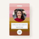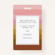 Ce badge attrayant présente des rayures horizontales chaudes dans les tons de rose, d'orange et de marron du coucher du soleil, avec espace pour une photo, nom, titre et logo. Idéal pour les événements, les conférences ou l'usure de bureau, il allie personnalité et professionnalisme dans un agencement audacieux et élégant.