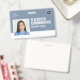 Un badge moderne et simple qui ne détourne pas des détails importants. Facile à lire de loin. Ajoutez un logo personnalisé et les détails de l'entreprise/de l'hôpital/de la clinique. Ajoutez le nom, la photo et le titre professionnel de l'employé. La barre de couleur peut être modifiée pour correspondre aux couleurs officielles de l'entreprise. À l'arrière, ajoutez des informations supplémentaires telles que l'adresse de retour et le numéro d'identification de l'employé. Parfait pour les logos ronds.