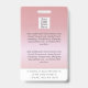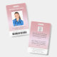 Ce badge d'identification d'or rose personnalisé comprend une photo d'employé, un nom, un titre, le nom de l'hôpital ou de l'entreprise, l'emplacement, le numéro d'identification de l'employé et le code à barres. Arrière - plan présente rose or ombre. Le dos du badge contient votre logo et des champs de texte personnalisés supplémentaires pour des informations de retour ou d'autres détails. Parfait pour les installations médicales ou d'entreprise qui ont besoin d'une identification de sécurité.