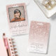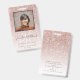 Personnalisez l'utilisation du modèle pour créer votre propre logo d'entreprise sur ce badge de salon de coiffure Rose Gold Parties scintillant et ajoutez le nom de l'employé et la photo. Vous pouvez ajouter une pièce d'identité de l'employé au verso et toute déclaration en cas de perte de renseignements. ©Elke Clarke