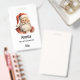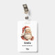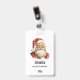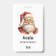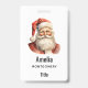 Name badge with a cute retro style illustration. Santa Claus with a bushy white beard wearing his traditional red suit.