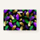 Seamless pattern of bright purple, green, and gold feathers on black Mardi Gras background. Design for the Mardi Gras holiday.