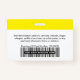 Personnalisez facilement ce badge de nom d'employé horizontal personnalisé avec photo, code à barres d'analyse ou code Qr et logo d'entreprise. Un design d'entreprise simple dans les couleurs jaunes et blanches entièrement personnalisable dans les tailles avant et arrière, sans-serif polices de base et moderne et un look professionnel et clair. Ces badges d'identification de sécurité standard sont disponibles avec cordon, clip métallique ou avec rétractable. Vous pouvez personnaliser vos cartes d'identification en choisissant n'importe quelle couleur arrière - plan et n'importe quel style de police avec l'éditeur Graphic Design en cliquant sur customiser plus loin. Pas de commande minimum.