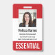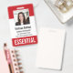 Identifier le personnel, les employés et les travailleurs essentiels avec ces badges de modèle photo personnalisés. Personnalisez ces badges verticaux avec une photo et un nom d'employé, ainsi que plusieurs champs de texte personnalisés pour le titre ou le rôle, le nom de l'entreprise, le numéro d'identification de l'employé ou la date de validité. "ESSENTIEL" ou le texte souhaité apparaît en bas, en caractères blancs gras pour faciliter l'identification. Customisez avec un code à barres sur le dos si nécessaire, avec des informations de retour ou d'autres détails.