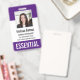 Identifier le personnel, les employés et les travailleurs essentiels avec ces badges de modèle photo personnalisés. Personnalisez ces badges verticaux avec une photo et un nom d'employé, ainsi que plusieurs champs de texte personnalisés pour le titre ou le rôle, le nom de l'entreprise, le numéro d'identification de l'employé ou la date de validité. "ESSENTIEL" ou le texte souhaité apparaît en bas, en caractères blancs gras pour faciliter l'identification. Customisez avec un code à barres sur le dos si nécessaire, avec des informations de retour ou d'autres détails.