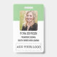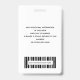 Personnalisez ces badges d'identification verticaux d'employé avec une photo et un nom d'employé, ainsi que plusieurs champs de texte personnalisés ainsi que l'ajout de votre logo. Le titre ou le rôle apparaît en bas en lettres noires grasses pour une identification facile. Personnalisez avec votre code-barres et les informations de retour ou d'autres détails au verso.