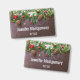 Un nom avec une photo rustique d'une table en bois marron avec des pinecones, des aiguilles de pin, de la neige et des ornements de Noël. Festif et adorable.