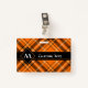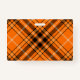 Échantillon de tartan moderne orange et noir halloween. Texte et monogramme personnalisés.