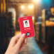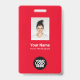 Badge Total photo de l'employé rouge, code barre, logo,