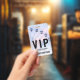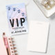 Ce badge VIP plein de vie présente une scène de coucher de soleil rêvée avec une grande roue dans l'arrière - plan, capturant l'ambiance colorée d'un concert ou d'un festival en plein air. Le doux mélange de rose, de bleu et de violet lui donne une sensation magique de crépuscule, parfaite pour des événements sur le thème de la Coachella. La conception utilise des polices noires audacieuses et simples, avec "VIP" en haut et l'espace ci-dessous pour le nom de l'événement, la date et "All Access Pass". La même conception apparaît à l'avant et à l'arrière pour un look cohésif. Vous pouvez customiser pleinement le texte et même échanger dans une autre photo si vous voulez correspondre à votre propre vibe d'événement.