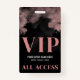 Tous Accéder Elegant Rose Gold VIP Badge. Ce design présente un top métallique en or rose faux rose avec un mélange de polices rose et blanche, jumelé à une disposition en noir et blanc pour une ambiance branchée et élégante. Idéal pour des concerts, des défilés de mode, des conférences ou des célébrations comme une douce fête du 16 ou du réveillon du Nouvel An. Une police serif en gras en bas est mélangée avec une typographie propre pour montrer VIP, le nom de l'événement, la date et "All Access Pass". Le texte et les couleurs sont entièrement personnalisables.