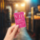 Ce badge de passe d'accès VIP glamour présente un design scintillant et féminin sur fond rose chaud. Le titre VIP est imprimé dans une police de paillettes rose tendre, suivi du titre de l'événement. Une bande de diamants sépare le texte. Le lieu et l'heure de la fête ou de l'événement sont imprimés au dos. C'est parfait pour un anniversaire, un sweet 16, une douche de mariée ou autre célébration élégante.